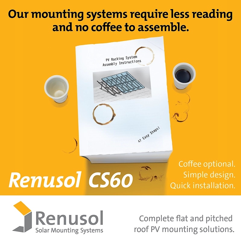 Produce a campaign with immediate brand identification and messaging that connects to the target market with quick and witty creative ad copy- separating Renusol from competitors. Use the brand yellow to grab attention and stake a claim on the market’s most simple solar mounting system. Design, illustration, photo editing, copy writing.